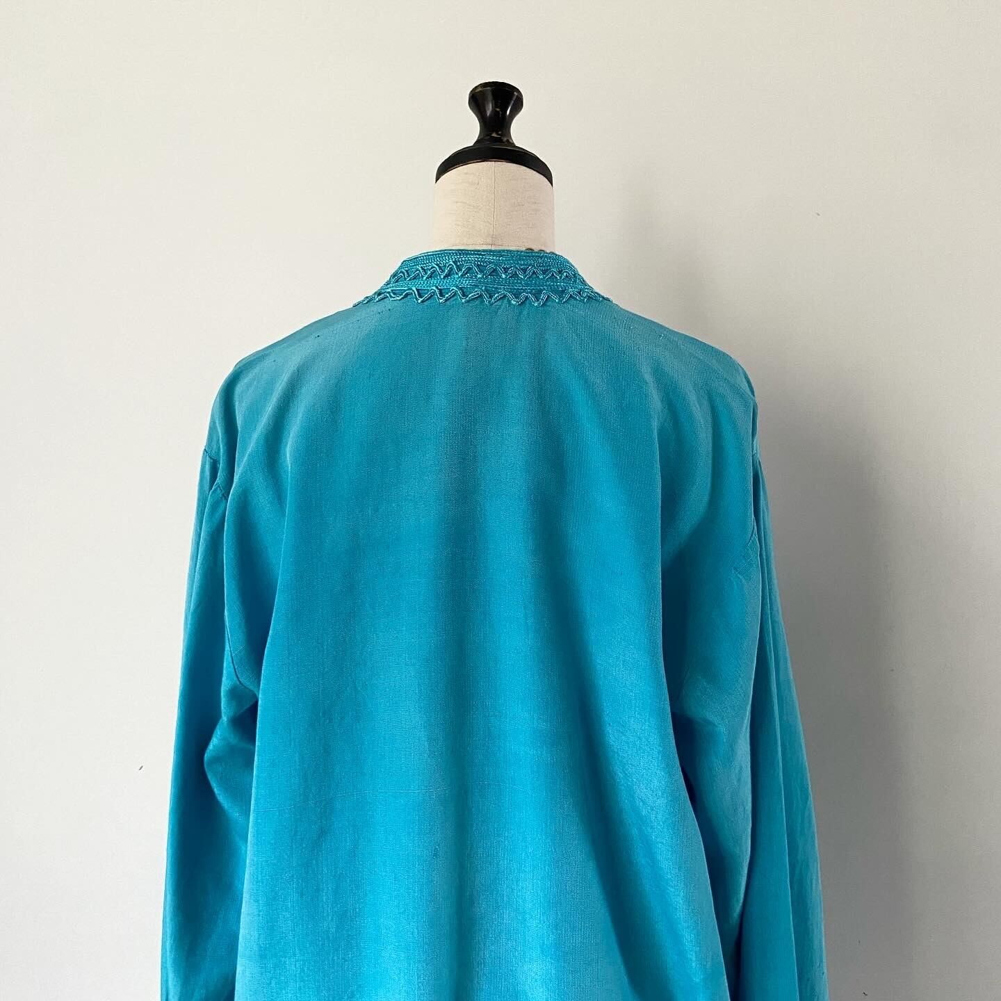 鮮やかなターコイズブルーが目を惹く刺繍ジャケットです。