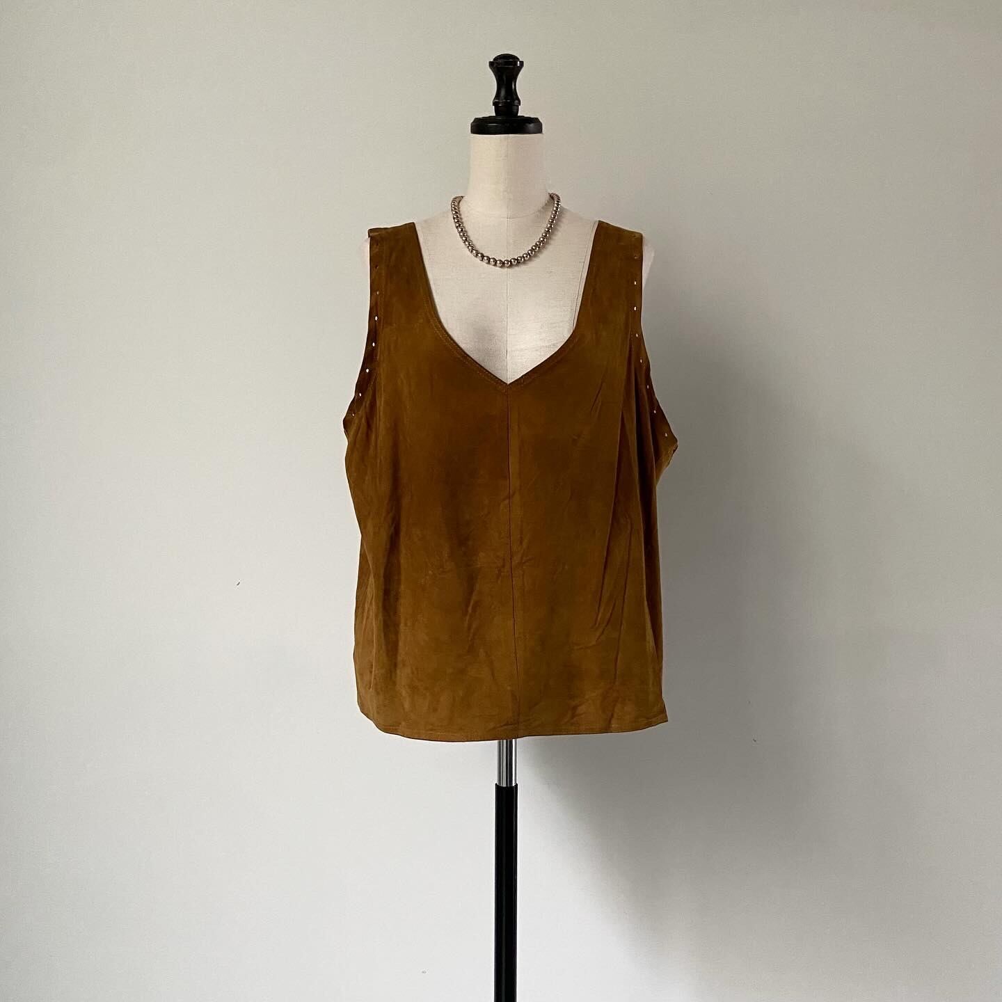 ミニマルなデザインに袖ぐりのパンチホールがアクセントになっております。