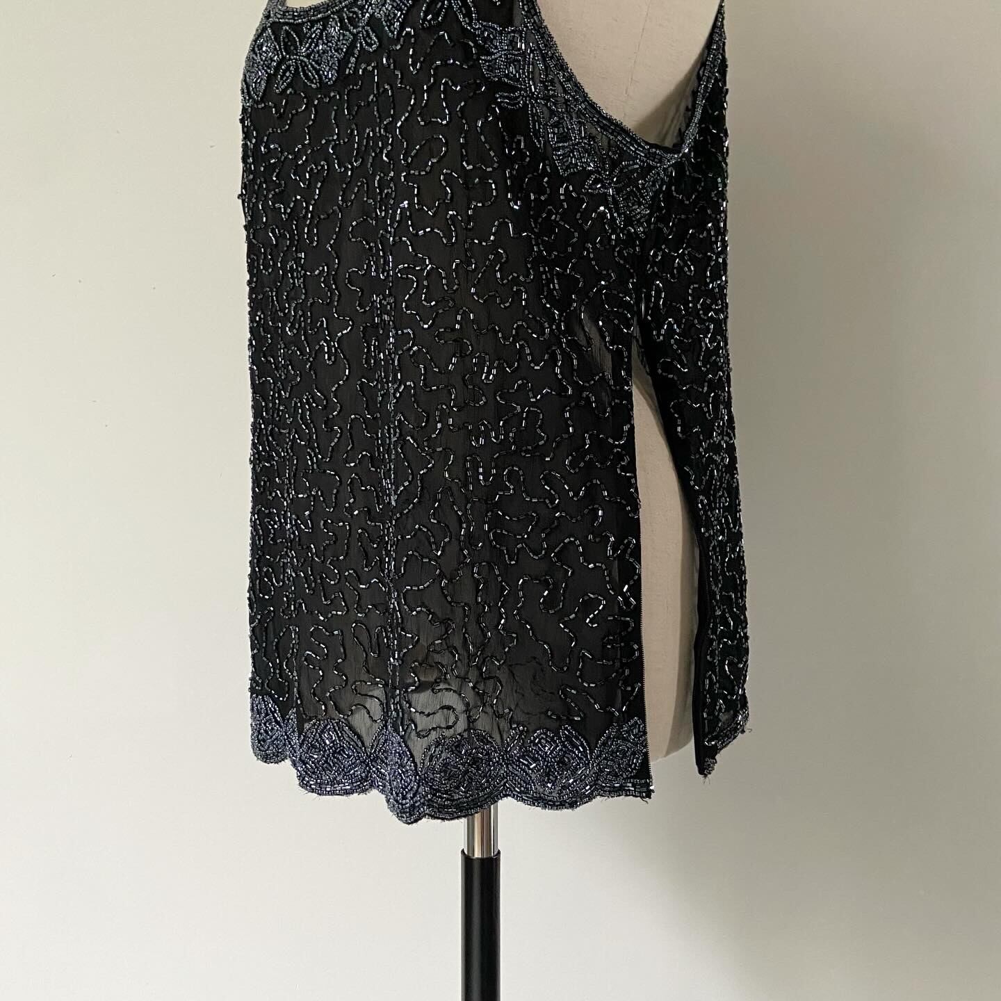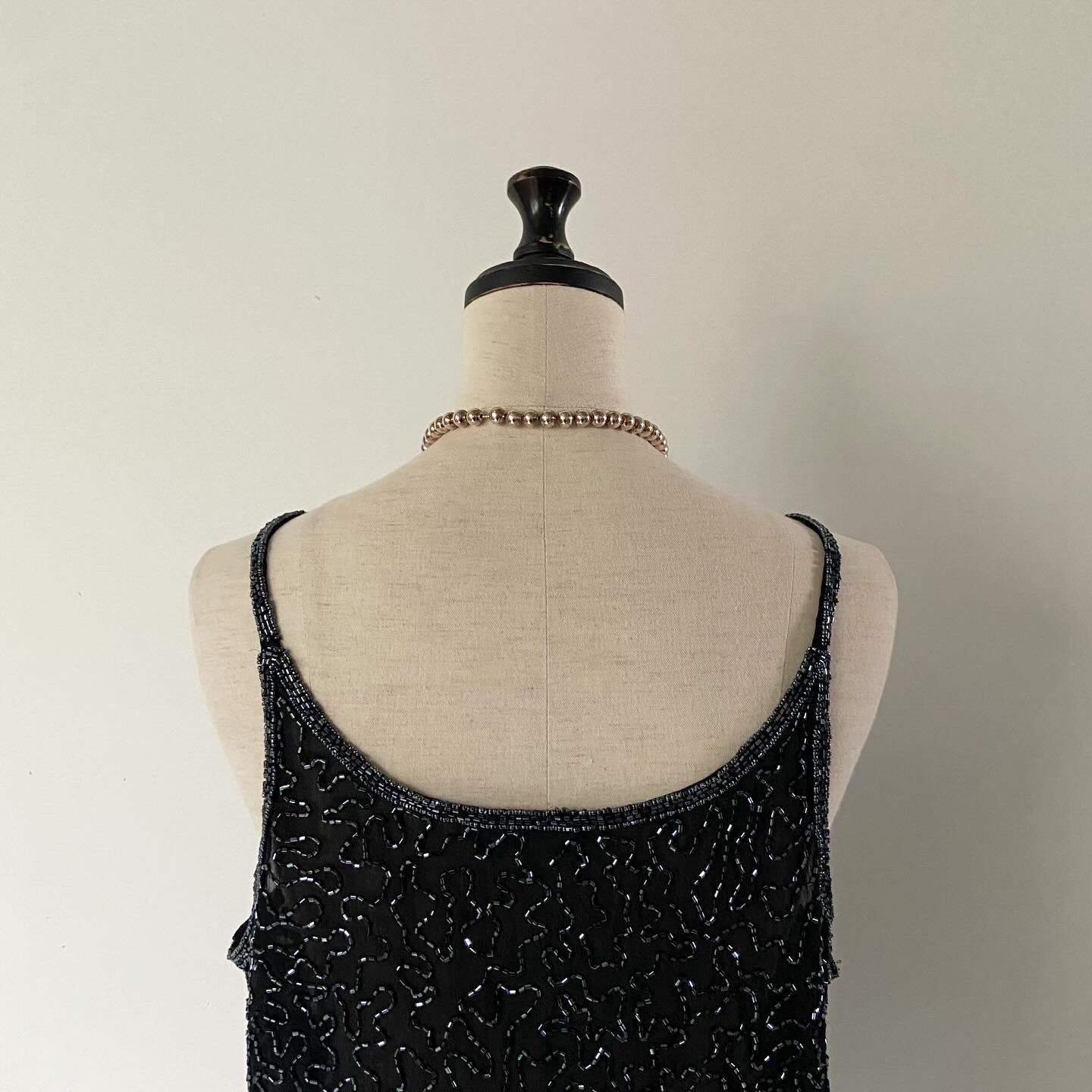 ビーズは生地の全面に手作業で縫い付けられており、贅沢な仕上がりとなっております。