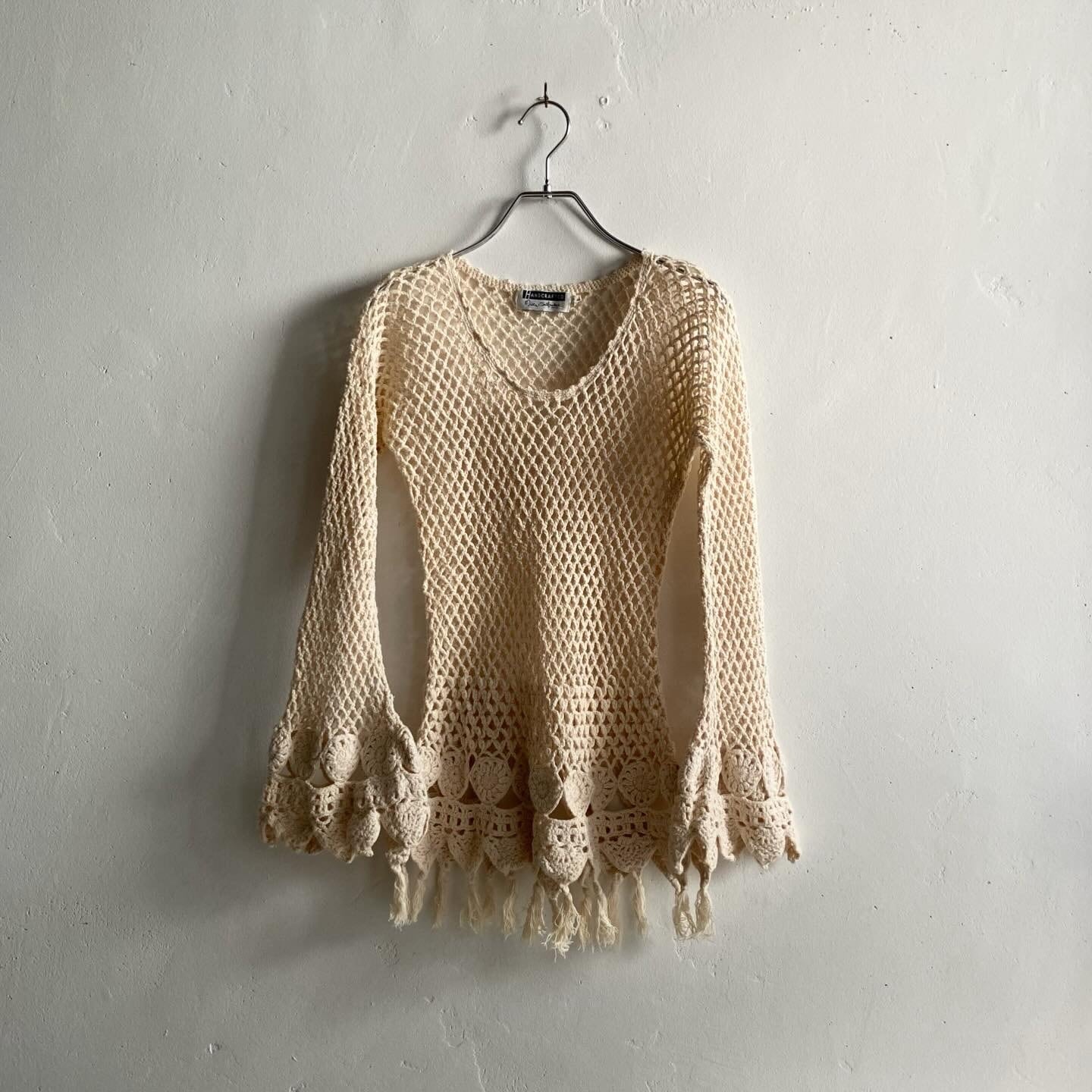 vintage / old miss selfridge / meshed fringe knit top