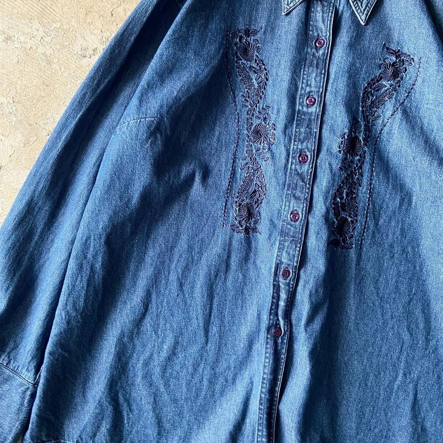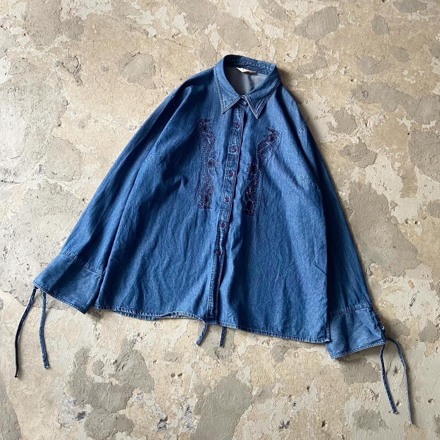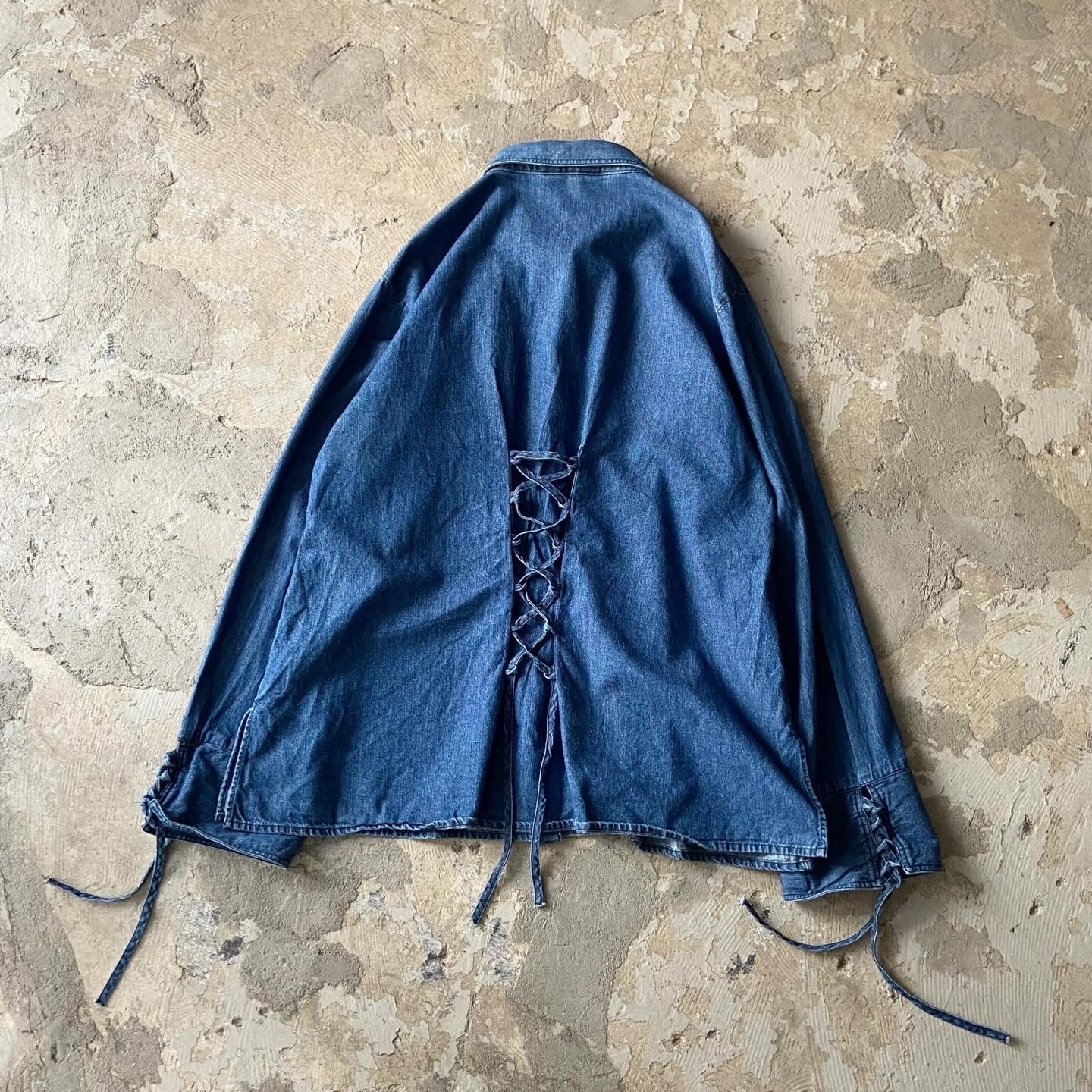 vintage / lace up denim shirt
