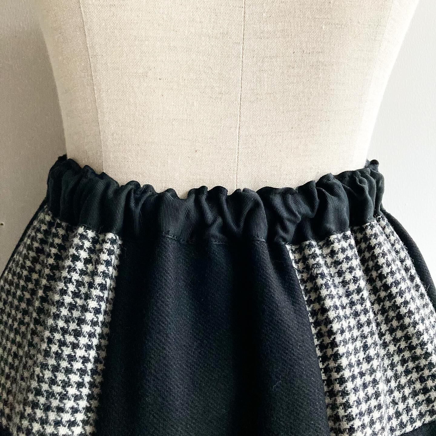 しっかりとしたマキシ丈に分量感、大胆なパッチワークが目を惹きます。