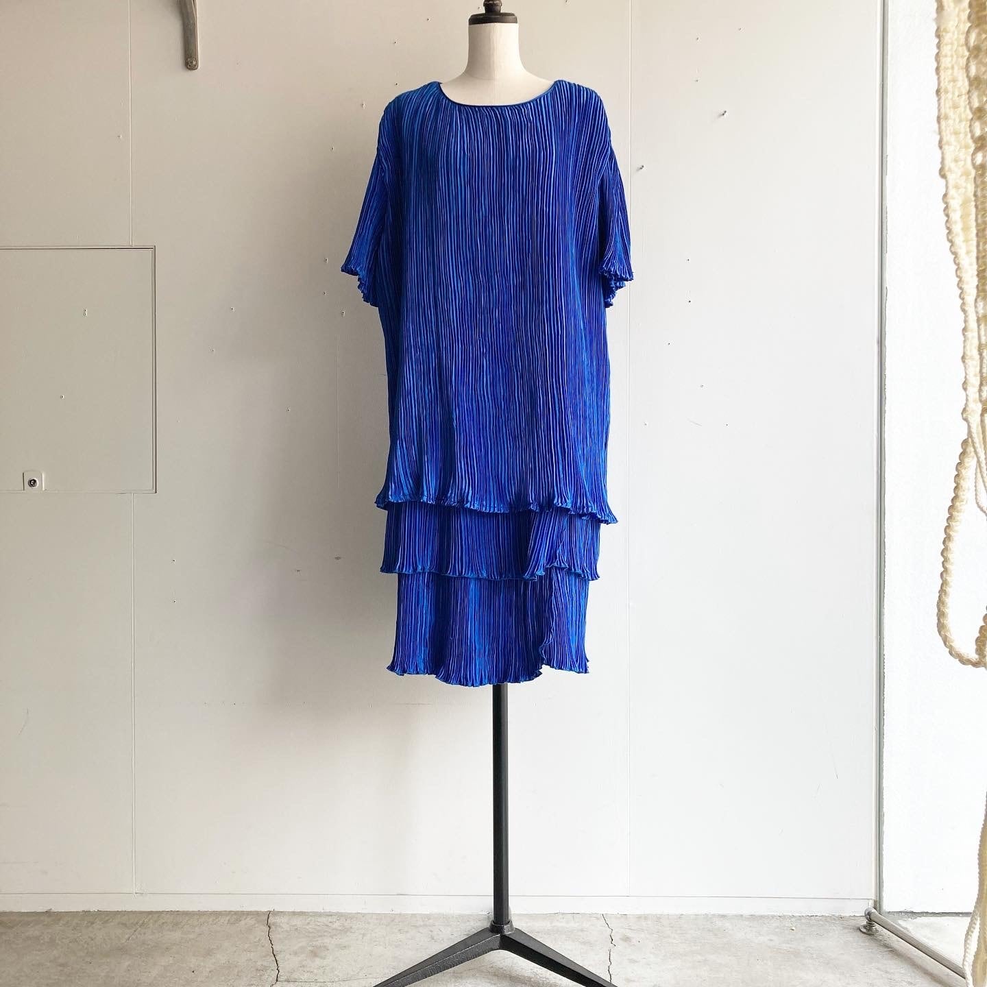 3層に重ねられたプリーツが動くたびに揺れるミニドレスです。
