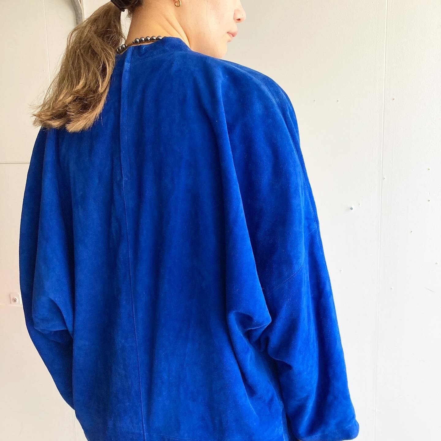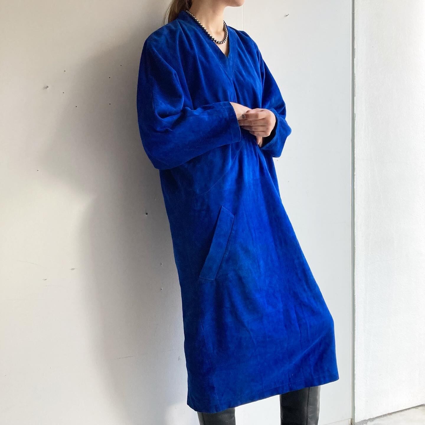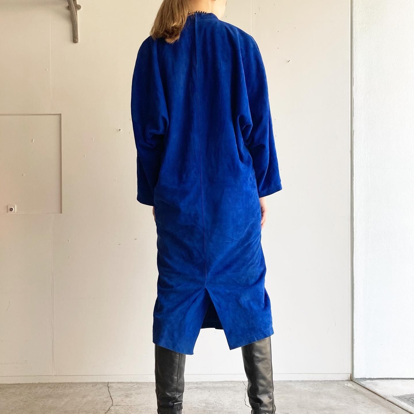 深いブルーが美しいスウェードのワンピースです。
