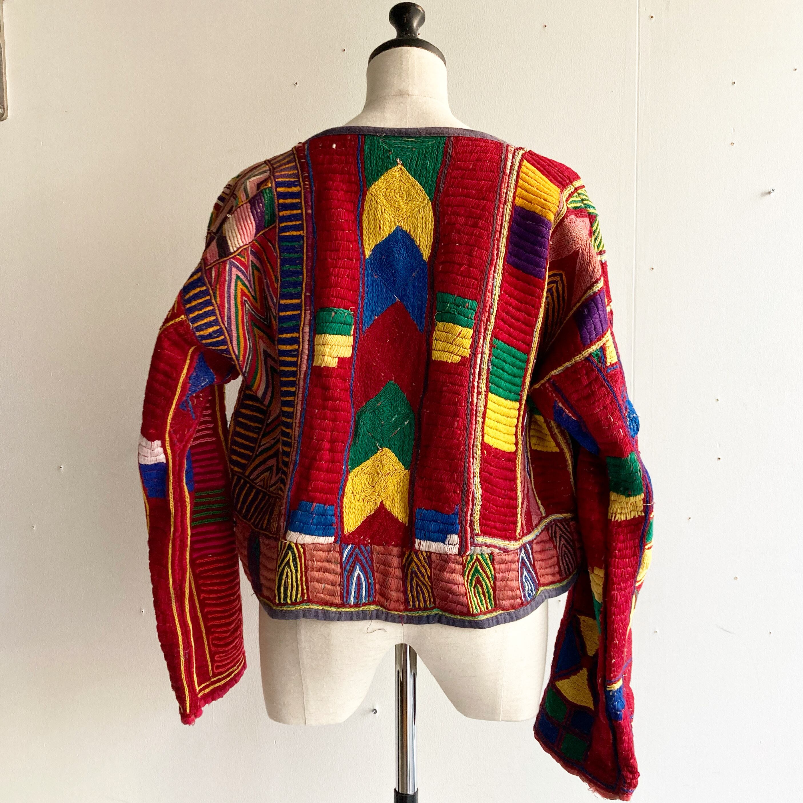 手間のかかった見事な刺繍、柄と色の配置、実際に着用していたと思われるヤレ感も込みでとても美しいです。
