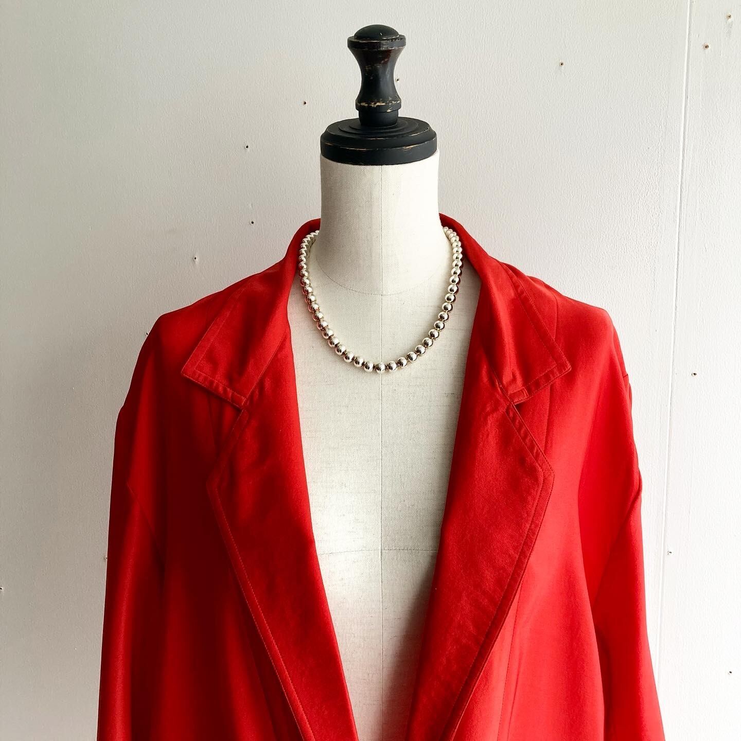 シルクならではの発色の良い赤がシンプルなスタイルに良く映えます。