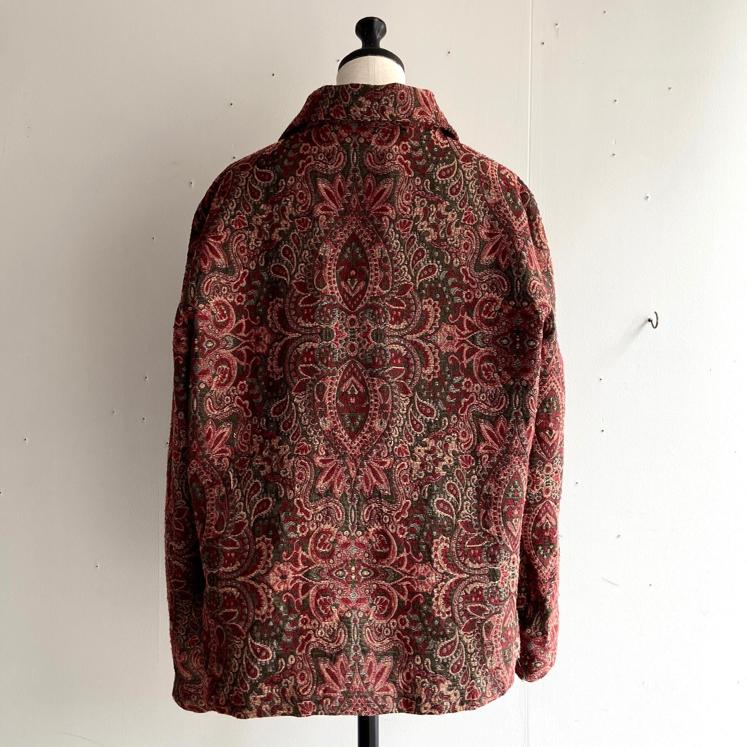中東のラグをイメージさせる総柄が印象的なジャケットです。