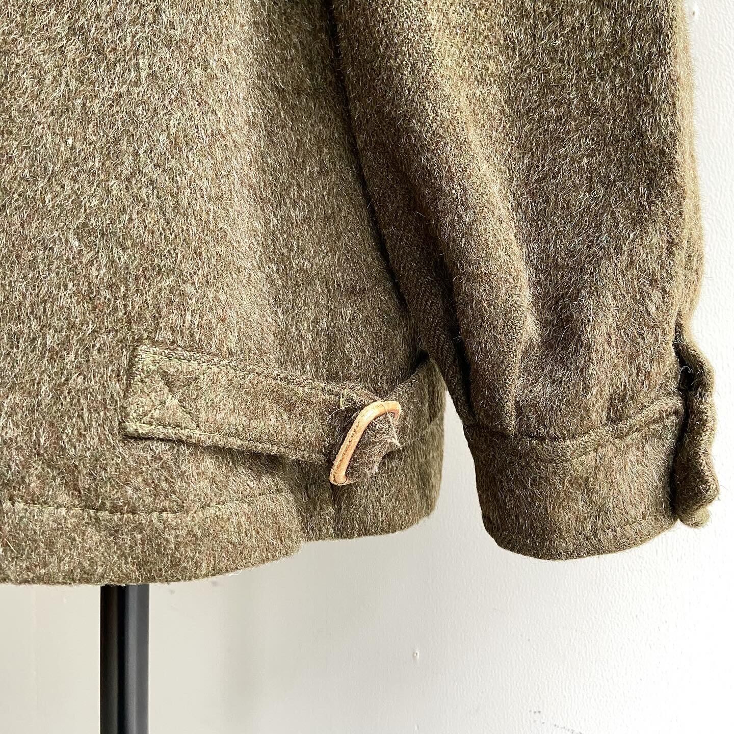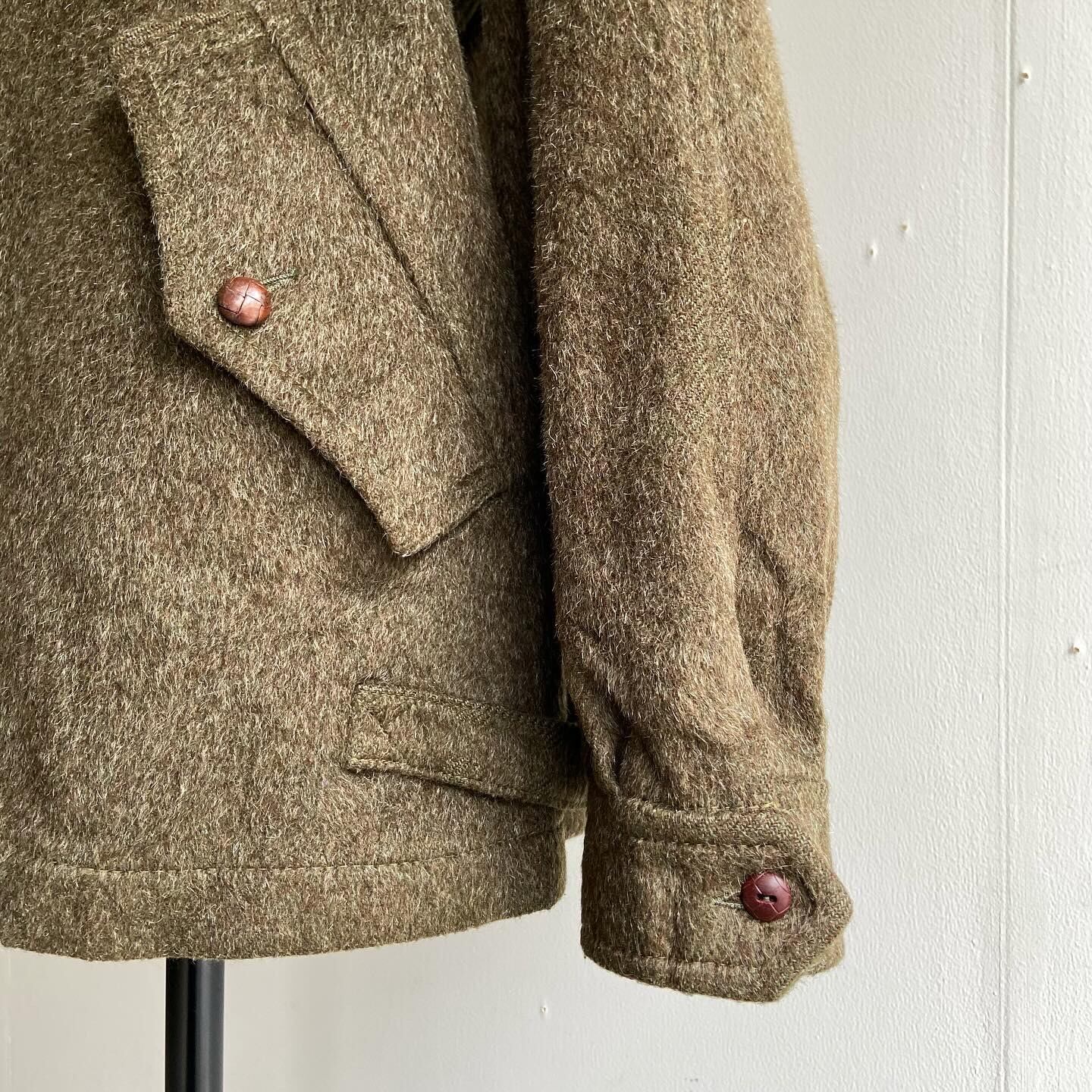 ミリタリー調のオリーブカラー、ややハリとコシのある生地、細部のデティールと随分男前な雰囲気のジャケットですがレディースです。